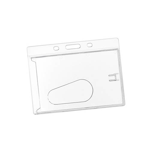 Porta-Credencial de Acrílico transparente, para Credenciales tamaño Tarjeta de Crédito. Presentación horizontal.