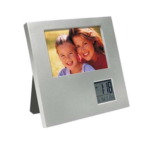 Porta-Retrato de Escritorio para foto de 13 x 9 cm con Estación Meteorológica Digital, incluye Reloj-Alarma-Calendario-Termómetro. Posición Horizontal o Vertical.