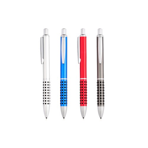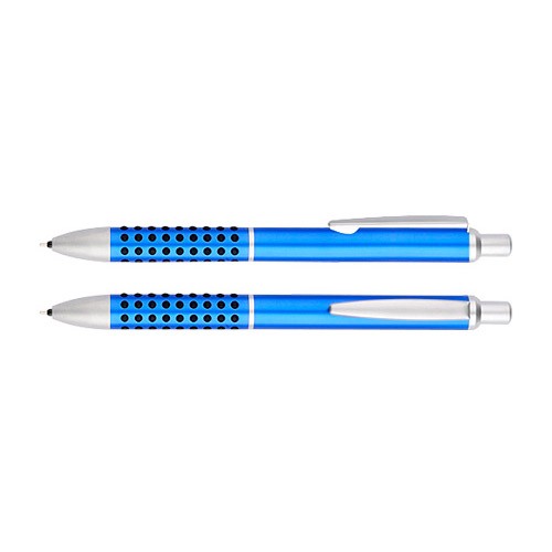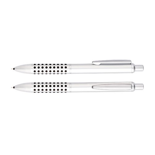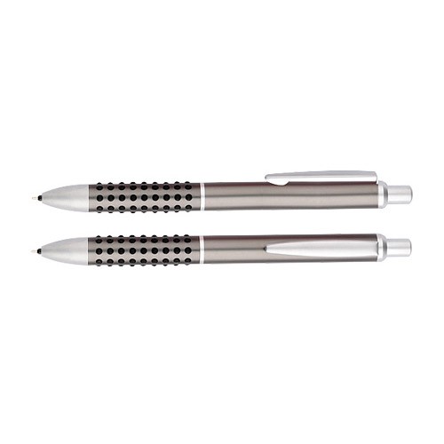 Portaminas metálico satinado modelo “Caterpillar”, con lunares de goma negra que brindan una suave sensación de masaje dactilar al escribir.