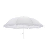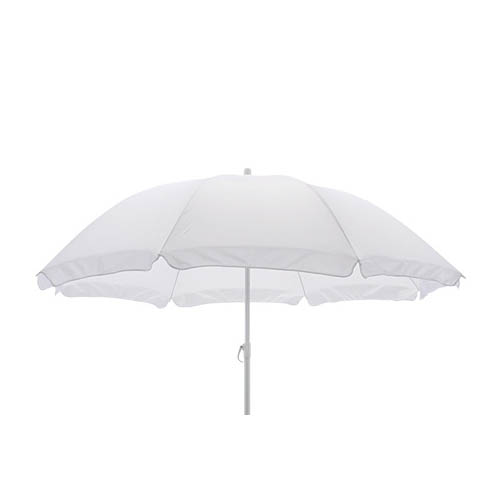 Quitasol de 8 cascos en tela Nylon 190T. Incluye 2 varas metálicas blancas desmontables, la inferior de 101 cm y la superior de 95 cm. Presentación en funda de PVC transparente con broche.