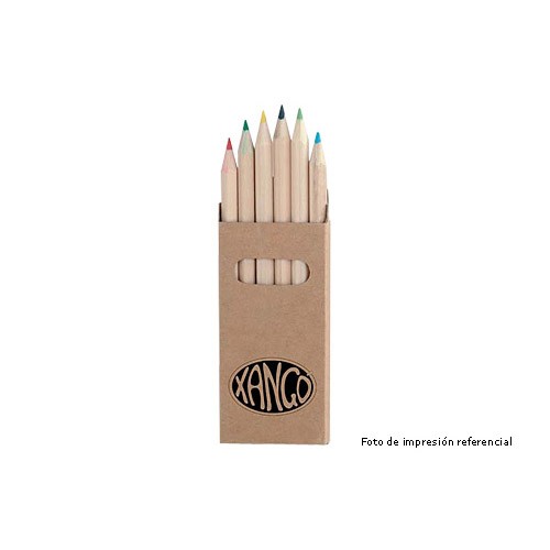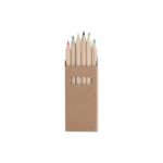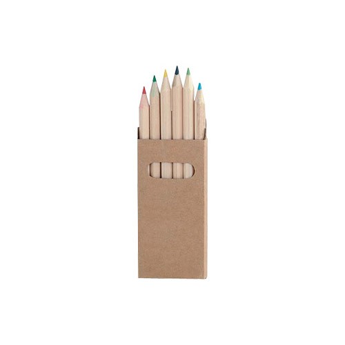 Set de 6 Lápices hexagonales cortos de colores, en Estuche rectangular de cartón reciclado con ventana.