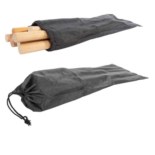 Set de 8 Tenedores telescópicos para la parrilla. Cada tenedor contiene mango de madera de pino e incluye anillo plástico distintivo de diferente color. Presentados dentro de bolsa de tela poliéster negro.
