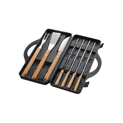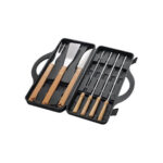 Set de 7 herramientas de BBQ en Maletín de plástico duro negro.