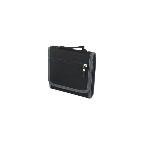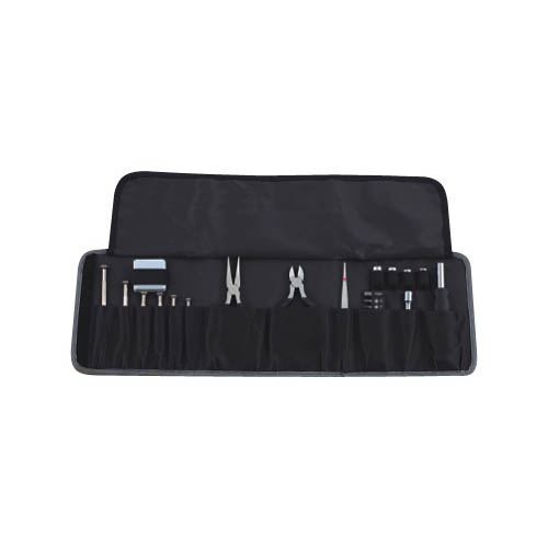 Set de 26 prácticas herramientas en Estuche plegable de tela raquelada negra.