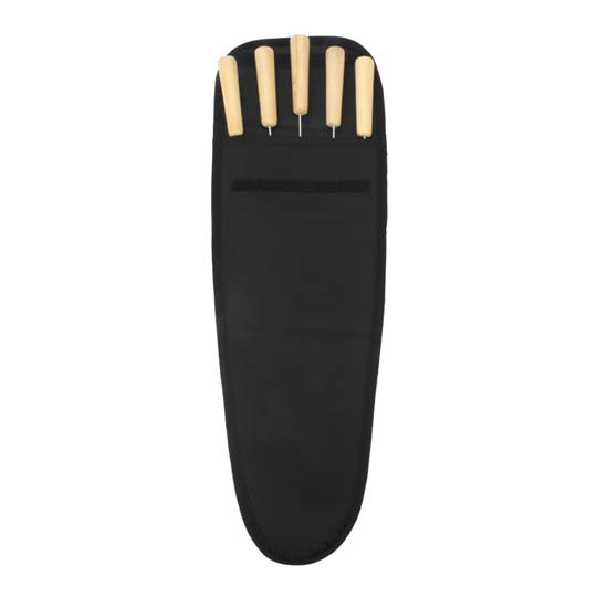 Set de 5 fierros para anticuchos con mango de madera, en estuche de tela raquelada. Fácil para bordar o imprimir.
