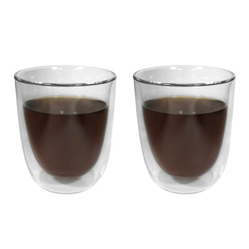 Vidrio. Set de vasos. Doble vidrio. Capacidad 280 ml cada vaso. Apto para bebidas frías y calientes.
