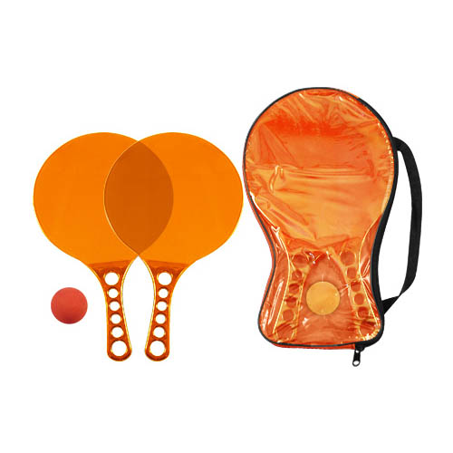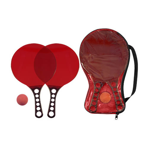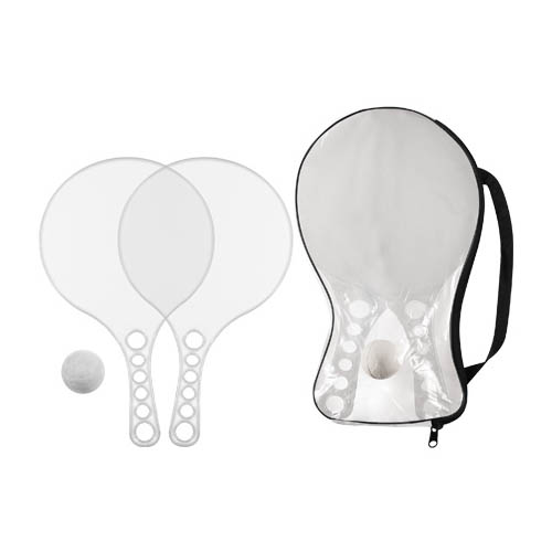 Set de Paletas de Playa de Acrílico de color Traslúcido, incluye estuche de PVC y pelotita de goma.