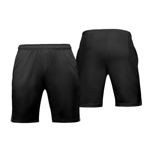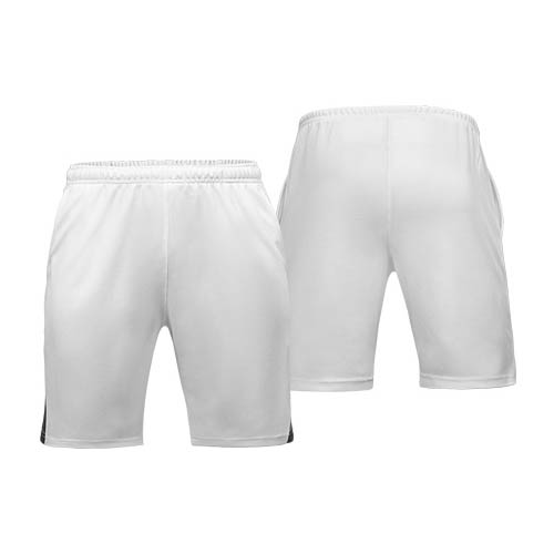 Short deportivo 100% poliéster de 160gr/m2, con detalle bicolor gris. Ideal para uso en todo tipo de deportes. Presentación individual en bolsa de polipropileno transparente