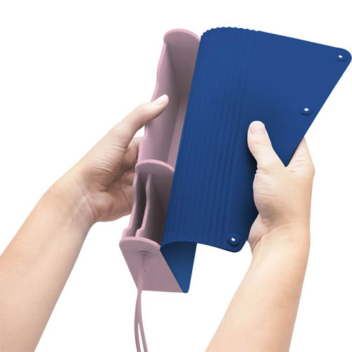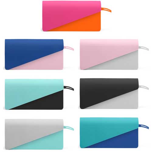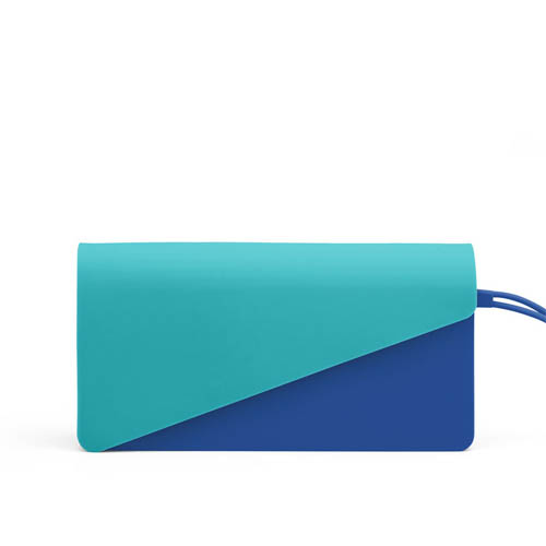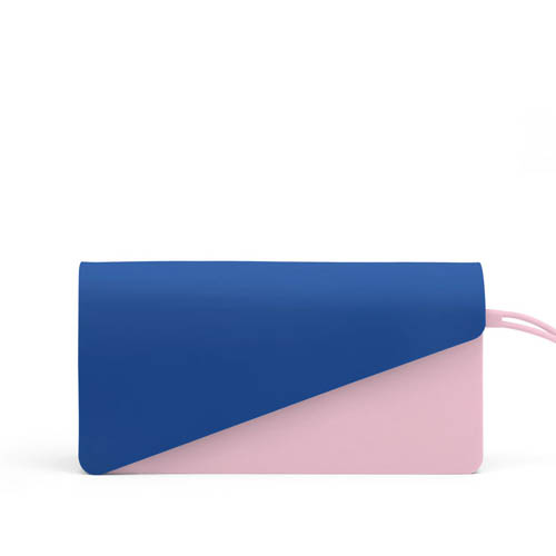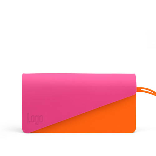 Sobre de silicona con solapa imantada y correa desmontable. Su interior tiene 3 compartimentos para guardar de todo. Silicona. 23,5 x 12 x 6,4 cm.