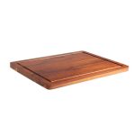 Amplia tabla de madera sólida de ACACIA, para cortar y servir carnes y pescados. Ideal también para verduras y/o selección de quesos. Madera trabajada y acabada en máquina, de forma 100% regular, con superficies, laterales y cantos lisos y suaves, para una mayor higiene y comodidad al momento de cortar y servir alimentos. La Acacia, junto con la Teca, es considerada la mejor, más dura y más resistente madera para utilizar para cortes de alimentos – Densidad aprox. 770kg/m3. – Dureza 9.5 (test de Monnin)