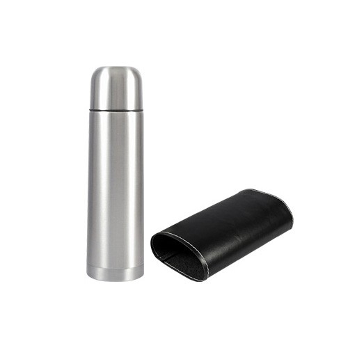 Termo de Acero Inoxidable de 1/2 Litro, con funda de PU negro (removible).