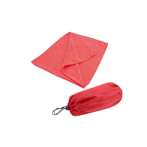 Toalla deportiva en tela Microfibra. Presentación dentro de bolsito de nylon 190D/PU.