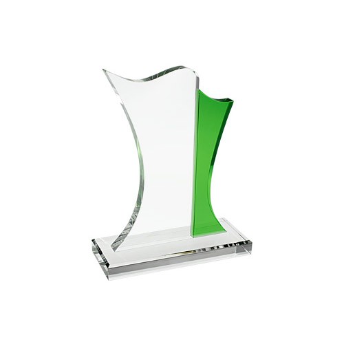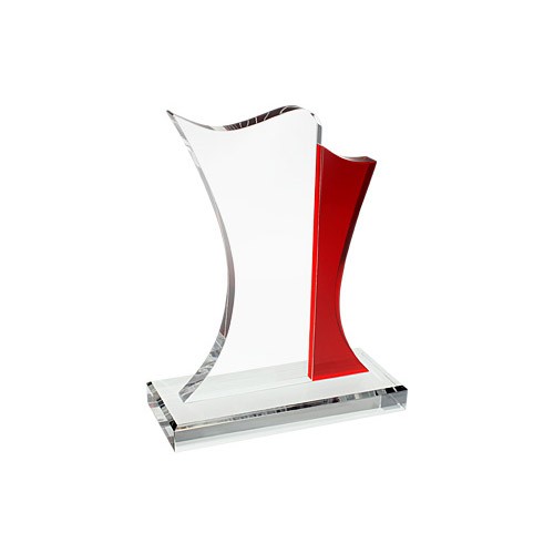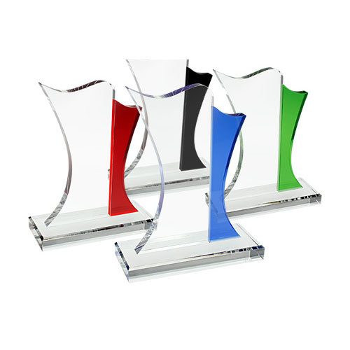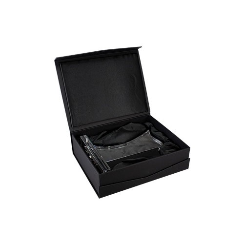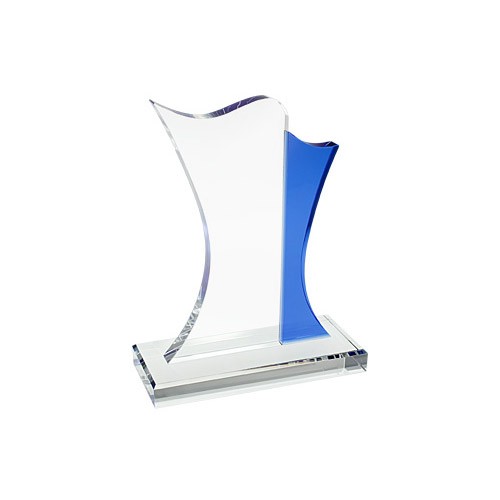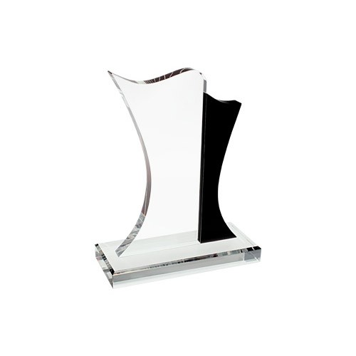 Deluxe Trofeo grande de Cristal modelo “Bauhaus” con aplicación de cristal-color. Presentación en caja de cartón forrado negro.