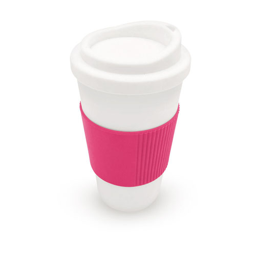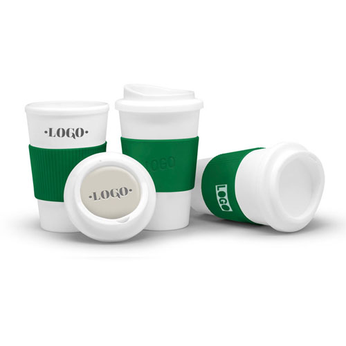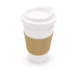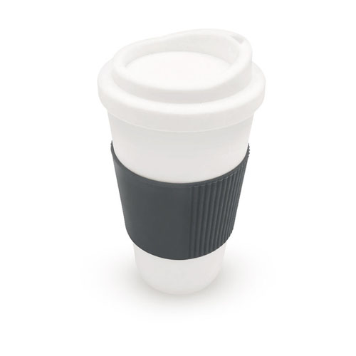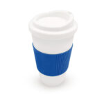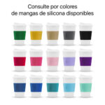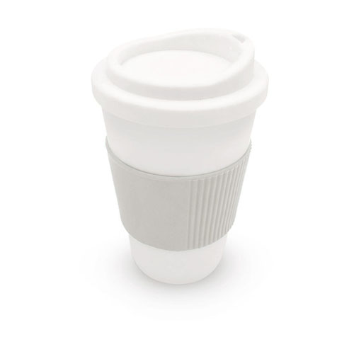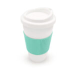 Vaso térmico para mantener las bebidas frías o calientes. Reutilizable. Apto para microondas y lavavajillas. Plástico BPA free y TPR. Ø 9,5 x 16 cm. Capacidad 330ml. Doble Pared. Tapa a rosca.